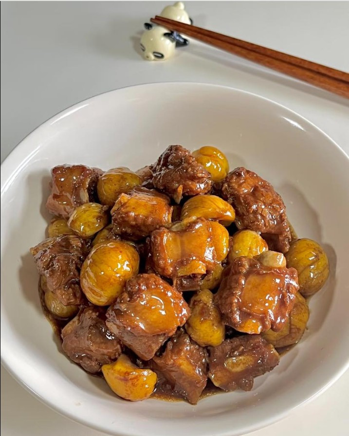 Cách làm: 1. Cho gừng và sườn vào chảo, xào cho khô nước. 2. Thêm nước tương, nước tương đen, hoa hồi, đường phèn, rượu nấu ăn, đảo đều. 3. Đổ nước sôi ngập mặt sườn, cho muối, hầm nhỏ lửa 20 phút. 4. Cho hạt dẻ và dầu hào vào, tiếp tục hầm thêm 20 phút. 5. Khi sườn mềm, mở lửa lớn, sên đến khi nước sốt sánh lại. 6. Múc ra đĩa, ăn cùng cơm nóng là hết sảy 😋 Ẩn bớt