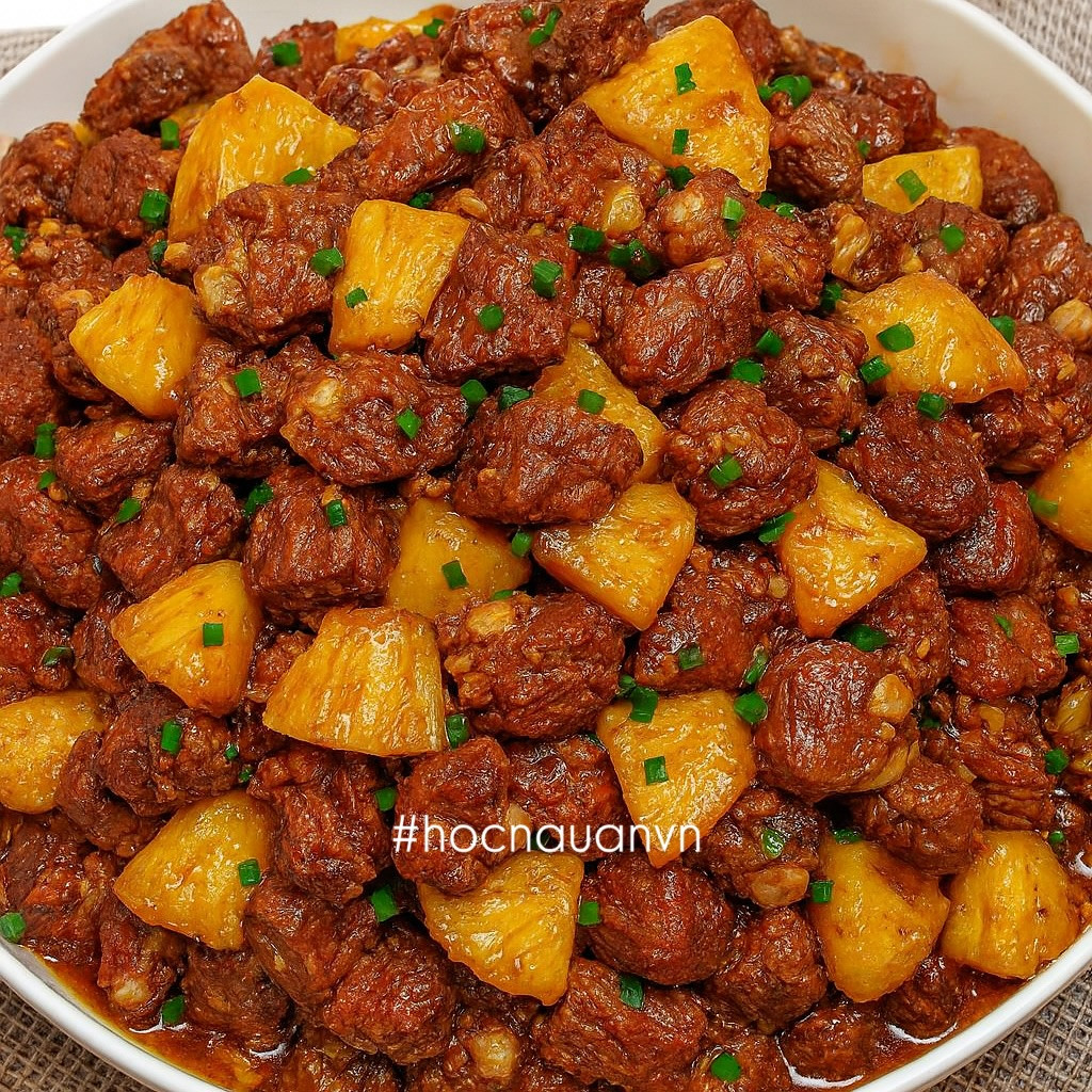 👉 Thành phẩm: Sườn mềm thấm vị, sốt sánh óng ánh, xen chút chua ngọt của thơm, ăn với cơm nóng là “ngon hết sẩy”.