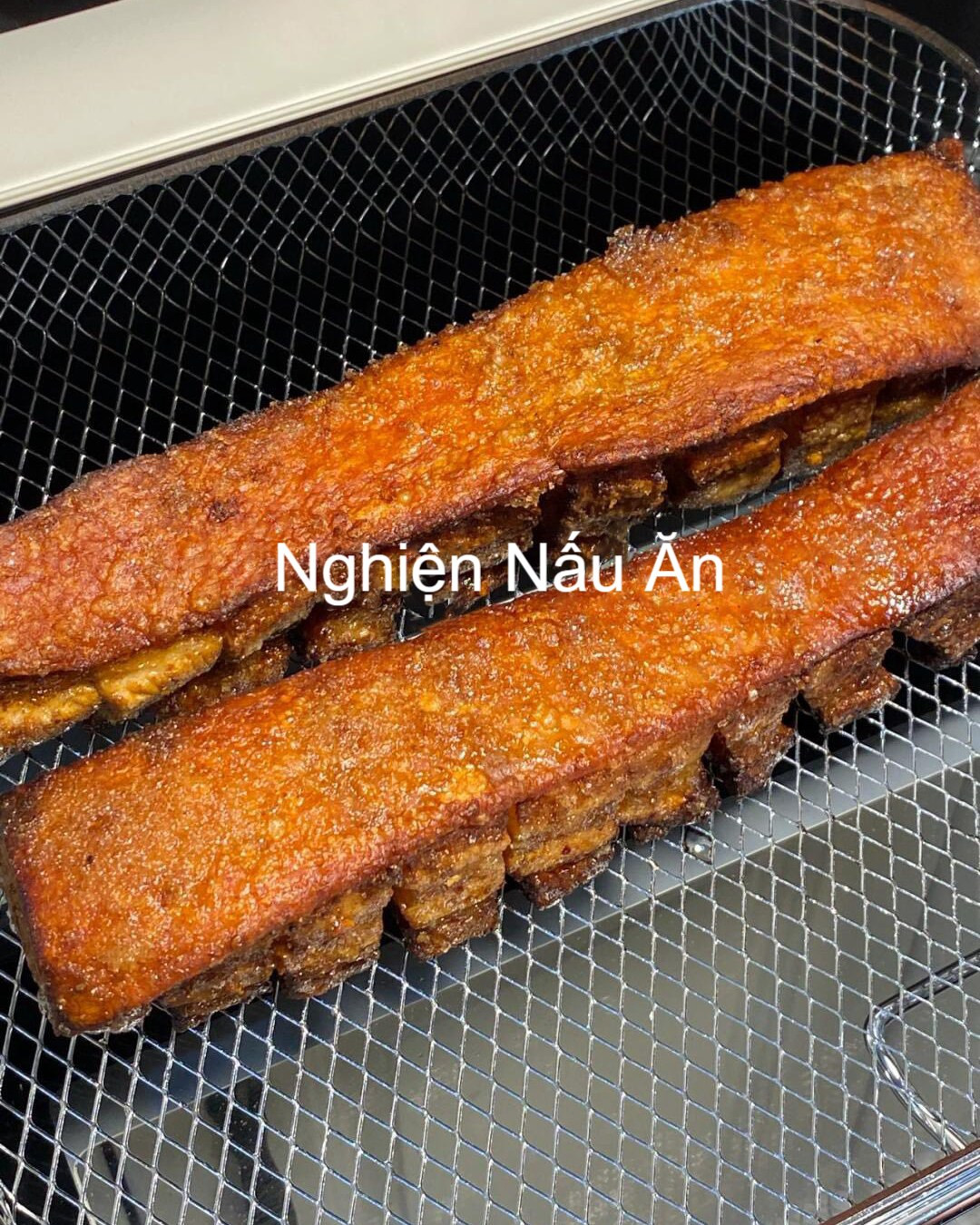 CÁCH LÀM THỊT BA CHỈ NƯỚNG DA GIÒN BẰNG NỒI CHIÊN KHÔNG DẦU. - Luộc thịt ba chỉ cùng gừng, hành lá, muối và hạt tiêu trong 20 phút. - Dùng tăm x.iên da heo, kh.ứa nhẹ thịt (ko cắt rời). - Ướp với: 1 thìa hạt nêm, 2 thìa nước tương, 2 thìa dầu hào, 1/2 thìa đường, 2 thìa bột ớt, 2 thìa bột ngũ vị, 1/2 thìa r.ượu nấu ăn. Trộn đều và ướp trong 30 phút. - Bọc giấy bạc phần thịt, phết giấm lên da, phủ một lớp muối hạt. - Nướng ở nhiệt độ 200 độ C trong 30 phút. Lấy ra, bỏ muối, phết lại giấm rồi nướng thêm 10 phút nữa là hoàn thành! Chúc cả nhà thành công với cách làm trên.