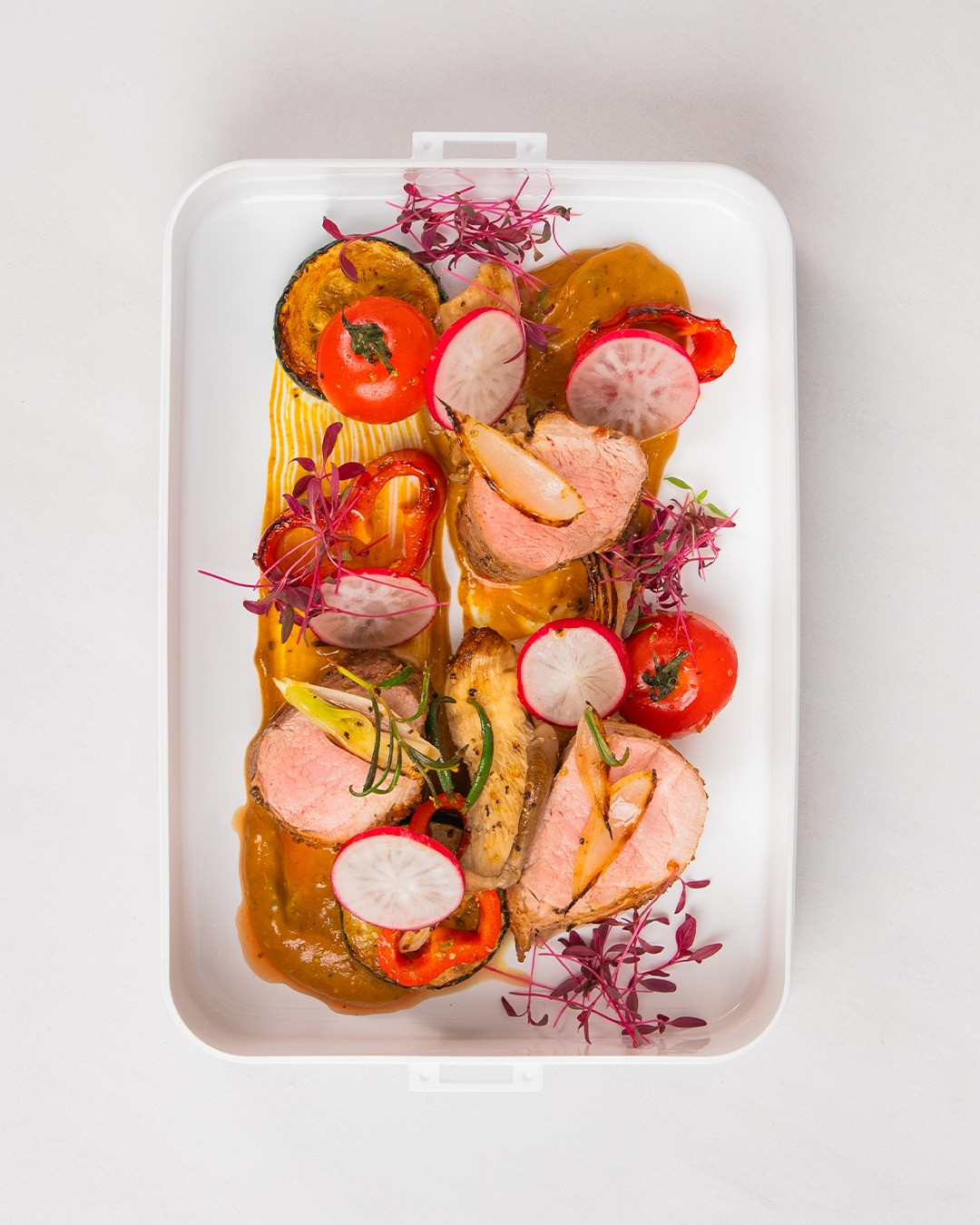Cách làm: 1️⃣ Ướp thịt thăn lợn với bột tỏi, lá húng quế khô, lá mùi tây khô, tiêu và muối. Để thịt nghỉ vài tiếng để ngấm gia vị. 2️⃣ Làm nóng dầu ô liu trong chảo và áp chảo vàng xém thịt thăn lợn mỗi mặt khoảng 2 phút. Sau đó, chuyển thịt vào lò nướng đã làm nóng trước (khoảng 170°C) và nướng thêm 11 phút. Khi thịt chín, để thịt nghỉ 5 phút trước khi thái lát – cách này sẽ giúp thịt giữ trọn vị ngọt và mọng nước. 3️⃣ Trong lúc đó, thái lát mỏng nấm đùi gà, bí ngòi, ớt chuông và tỏi. Chuẩn bị cà chua bi. 4️⃣ Trong một chiếc chảo khác, làm nóng dầu ô liu với ớt mảnh khô, sau đó cho nấm và rau củ vào xào cho đến khi vàng thơm. Vớt ra khỏi chảo. 5️⃣ Vẫn trong chiếc chảo đó, cho mù tạt Sarepta kết hợp với kem tươi và đun nhỏ lửa, khuấy đều cho đến khi được sốt sánh mịn, béo ngậy. 6️⃣ Đặt những lát thịt thăn lợn đã thái lên trên lớp sốt mù tạt ấm nóng, thêm nấm và rau củ đã xào. Trang trí với xà lách Măng Cừu, cải cầu vồng và củ cải đỏ. Thưởng thức thôi nào!