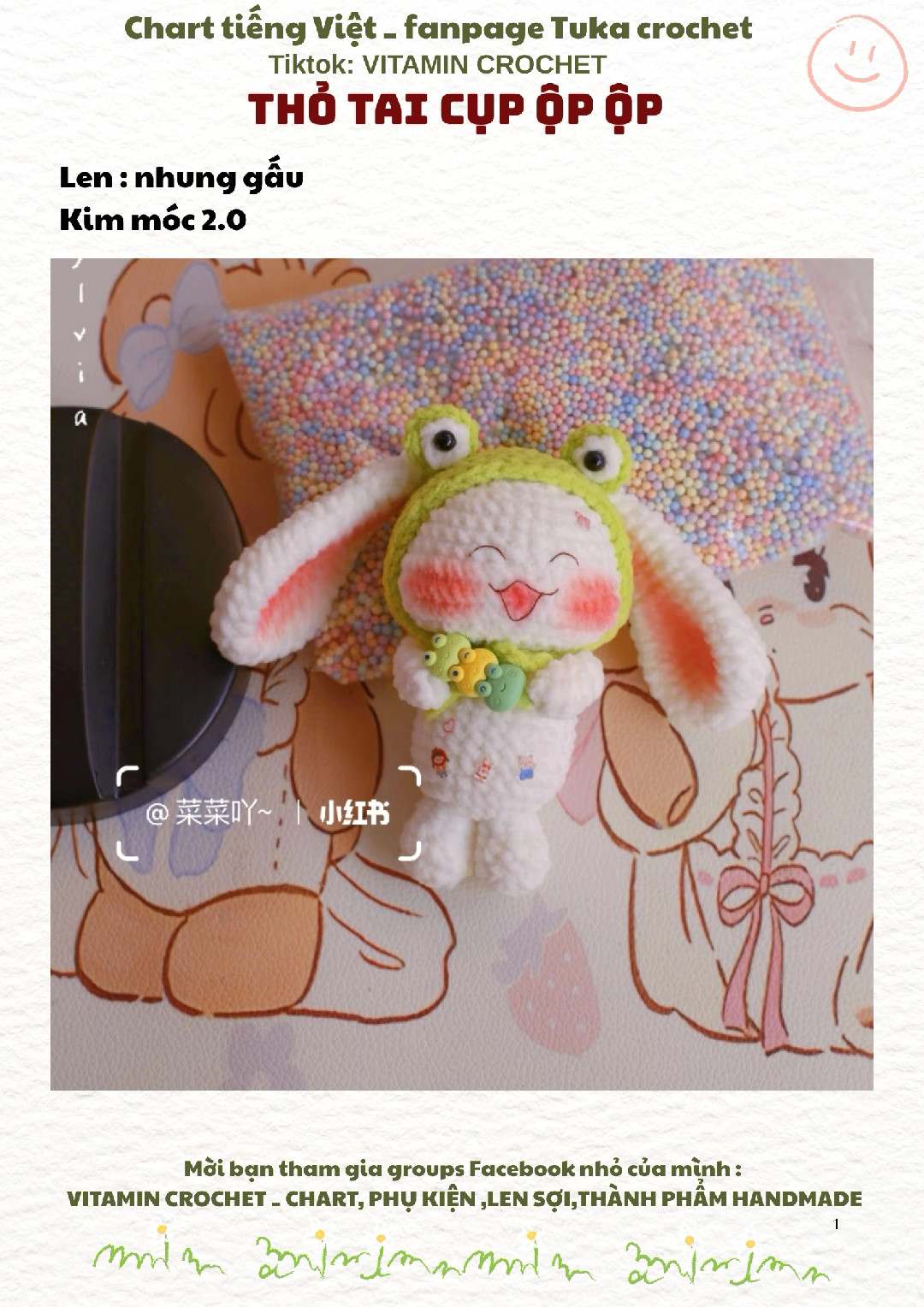 Chart móc thỏ đội mũ ếch Ộp ộp ộp kute à nhen . #chartmoclen #lenhandmade #crotchet #chartdichtiengviet #chartmockhoa #diy #chartTiếngViệt #TukaCrochet