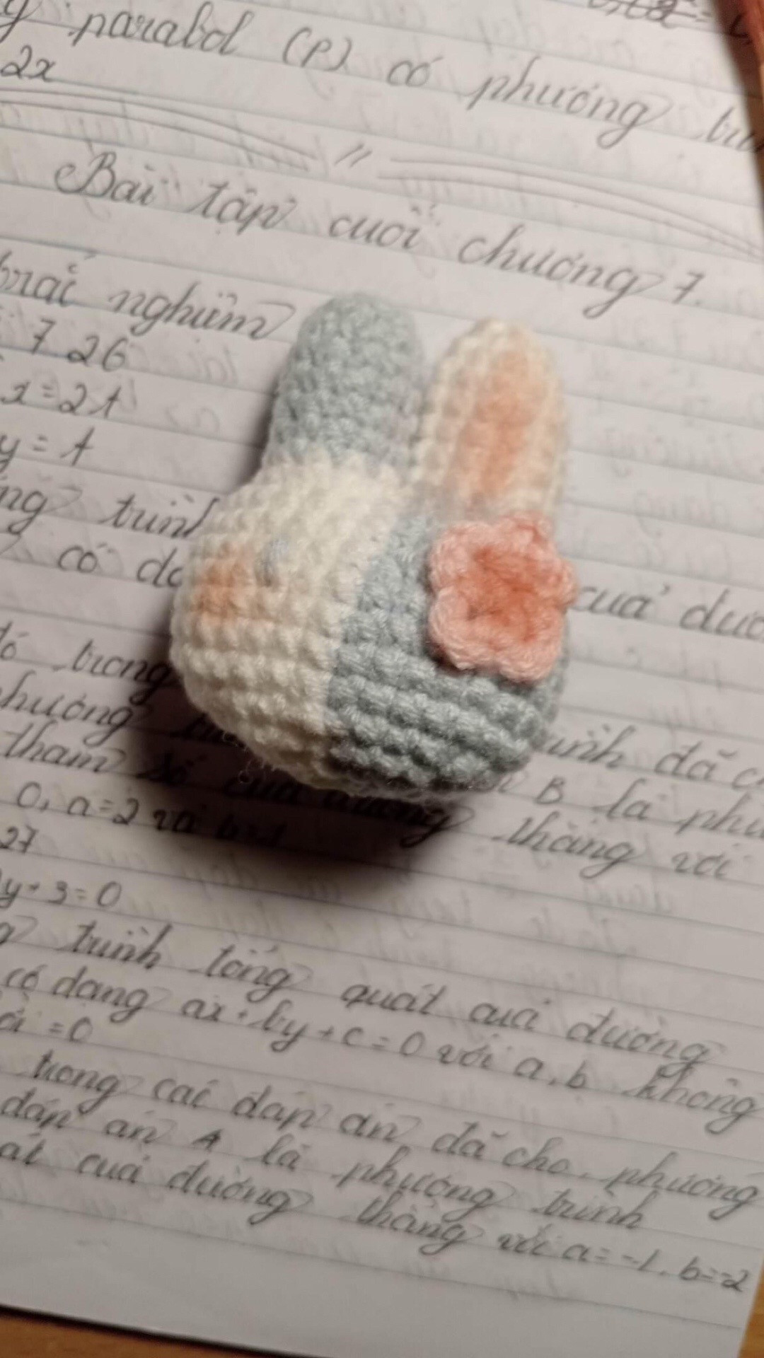 Thú len móc hình thỏ nhỏ xinh với bông hoa trang trí.