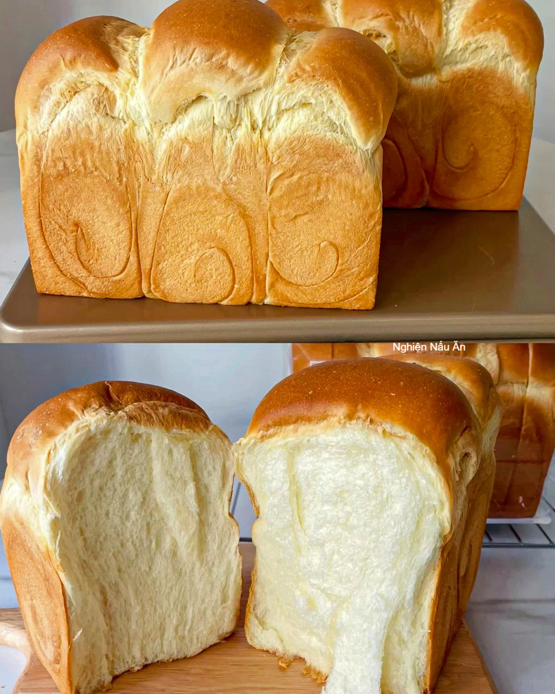 THỬ NGAY CÁCH LÀM BÁNH MÌ NƯỚNG HÌNH NÚI MỀM MỊN, THƠM LỪNG, LÊN MÀU ĐẸP KHÓ CƯỠNG Nguyên liệu: - 510g bột mì hàm lượng gluten cao - 55g đường - 196g sữa - 100g lòng trắng trứng - 100g nước - 6g muối - 45g bơ - 15g men tươi (hoặc 5g men chịu đường cao) - Nhào bột - Trộn tất cả nguyên liệu trừ bơ và muối. - Nhào đến khi bột tạo màng thô. - Thêm bơ và muối, tiếp tục nhào đến khi bột mịn và có màng trong. - Tạo hình - Chia bột thành 6 phần và vo tròn. - Bọc kín và để nghỉ 12 phút. - Cán mỗi phần thành hình chữ nhật dài rồi cuộn lại. - Để nghỉ thêm 12 phút. - Cán mỏng lần nữa khoảng 40cm và cuộn lại lần hai. - Ủ bột - Để bột nở ở nơi ấm đến khi đạt khoảng 80% khuôn. - Nướng bánh - Làm nóng lò đối lưu ở 150°C. - Nướng 30 phút. - Sau khi nướng xong, mở cửa lò vài giây cho hơi nước thoát ra. - Lấy bánh ra, để nguội hoàn toàn rồi cắt lát hoặc đóng gói. - Ghi chú quan trọng - Mùa hè nóng: dùng đá bào lỏng khi nhào để kiểm soát nhiệt độ bột, giúp bánh mịn và ngon hơn. - Mỗi loại bột hút nước khác nhau: nên chừa lại 5–10g nước để điều chỉnh độ đặc. - Nhiệt độ nướng tùy lò: với lò thường, dùng 165°C (lửa trên) và 210°C (lửa dưới) trong khoảng 28 phút. Chúc cả nhà làm thành công ổ bánh mì nướng hình núi mềm thơm này, và nếu thấy ngon nhớ chia sẻ cho mọi người cùng thử nhé!