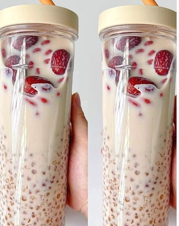 TỰ LÀM TRÀ SỮA SIÊU NGON TẠI NHÀ Chuẩn bị: - 10g Kỉ tử - 20g Long nhãn - 30g táo đỏ - 2 lát gừng - 20g đường nâu - 30g bột báng - 300ml sữa tươi không đường Cách làm: - Ngâm trước bột báng 40-60 p với nước - Kỉ tử và táo đỏ và long nhãn đem rửa sạch - Cho 300ml nước vào nấu sôi, sau đó cho bột báng và táo đỏ vào nấu cùng - Sau khi nấu được 10p thì cho kỉ tử, đường nâu, gừng và long nhãn vào nấu thêm 5 phút, đảo đều sau đó tắt bếp - Giờ thì cho sữa tươi vào đảo đều, cho ra cốc và thưởng thức ❤️