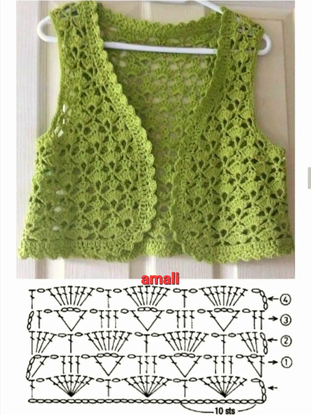 طرح بافتنی جلیقه قلاب با گل های زیبا