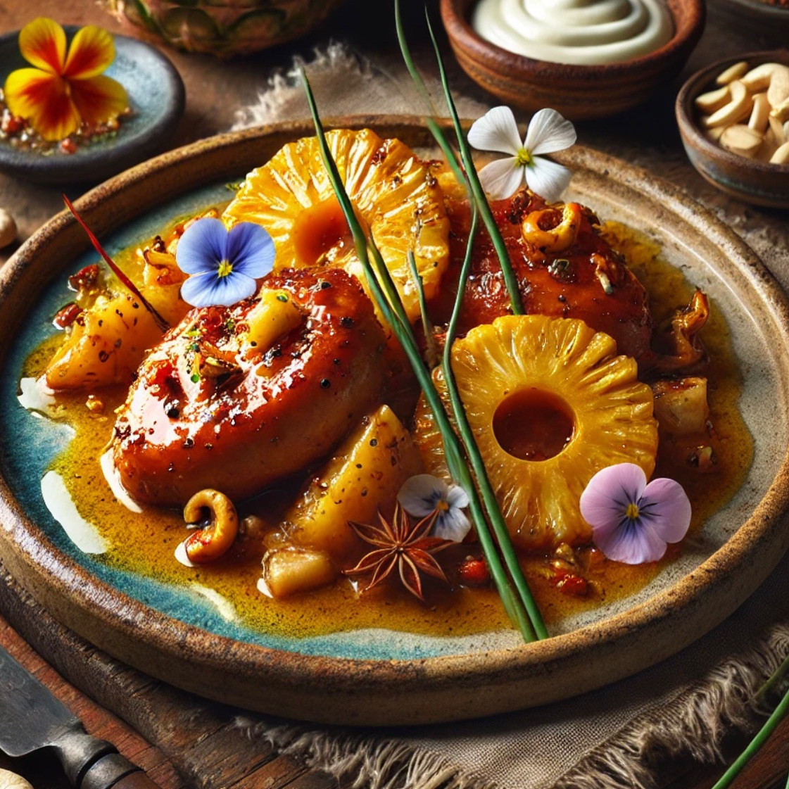 Ingredients (1 serving): • 1 chicken breast, sliced • ½ cup fresh pineapple chunks • 1 tbsp honey • 1 tsp grated ginger • 1 tsp soy sauce • 1 tbsp olive oil • Pinch of chili flakes • Salt to taste • Chopped cilantro (optional)