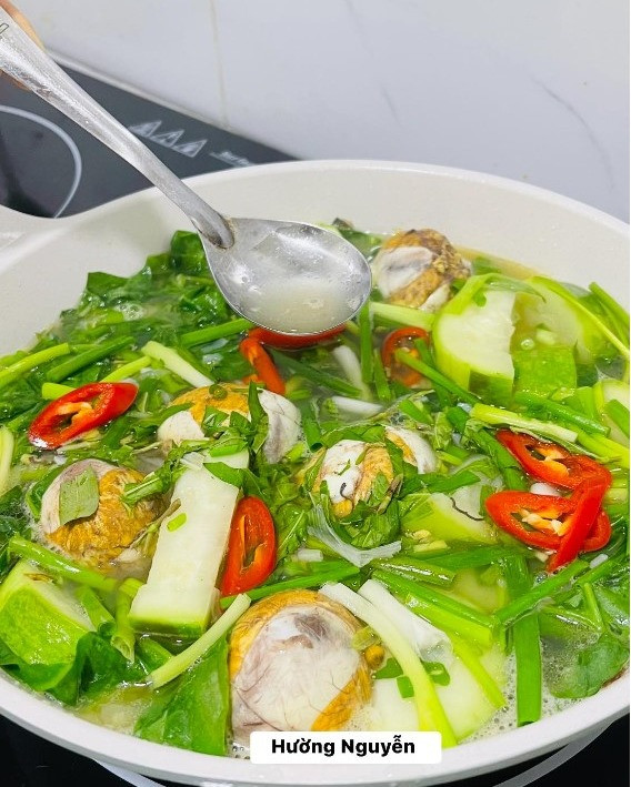 🌱 Trứng vịt lộn om bầu 🌱 Nhân một ngày đẹp trời không nắng cũng chẳng mưa sẵn nhà có trái bầu em mang đi nấu món này luôn. Ôi chao cái nước này ngọt dễ ăn thêm vị thanh mát của trái bầu ăn hợp ghê ha. 🍄Mình cần chuẩn bị: - Bầu loại quả ăn vừa tầm - Ít lá mồng tơi - 5 quả trứng vịt lộn - Ớt 🌶️ - Hành lá, rau răm, gừng, hành tím, tiêu xanh - Gia vị: tiêu, mắm, muối 🍄 Cách làm: - Bầu thái miếng dầy chút để khi nấu không bị nát - Trứng luộc 15 phút cho thêm 1 thìa muối khi vớt ra ngâm nước lạnh. Đập bỏ vỏ rồi để ra 🥣 bát - Phi thơm hành khô, gừng rồi thêm tiêu xanh. Tiếp đó cho bầu đã thái miếng vào nêm gia vị. Cho thêm nước, nước sôi nêm thêm gia vị, hạt tiêu cho vừa ăn. Cho trứng, lá mồng tơi đun thêm vài phút. Rắc hành, răm thái nhỏ, ớt lên là hoàn thành rồi 😍 fb: Huong Nguyen