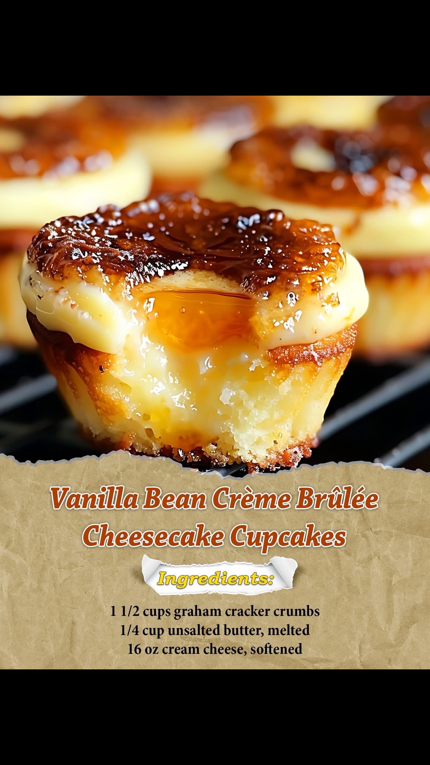 Just before serving, sprinkle about 1 teaspoon of granulated sugar on top of each cupcake. Use a kitchen torch to caramelize the sugar until it turns golden and crisp.