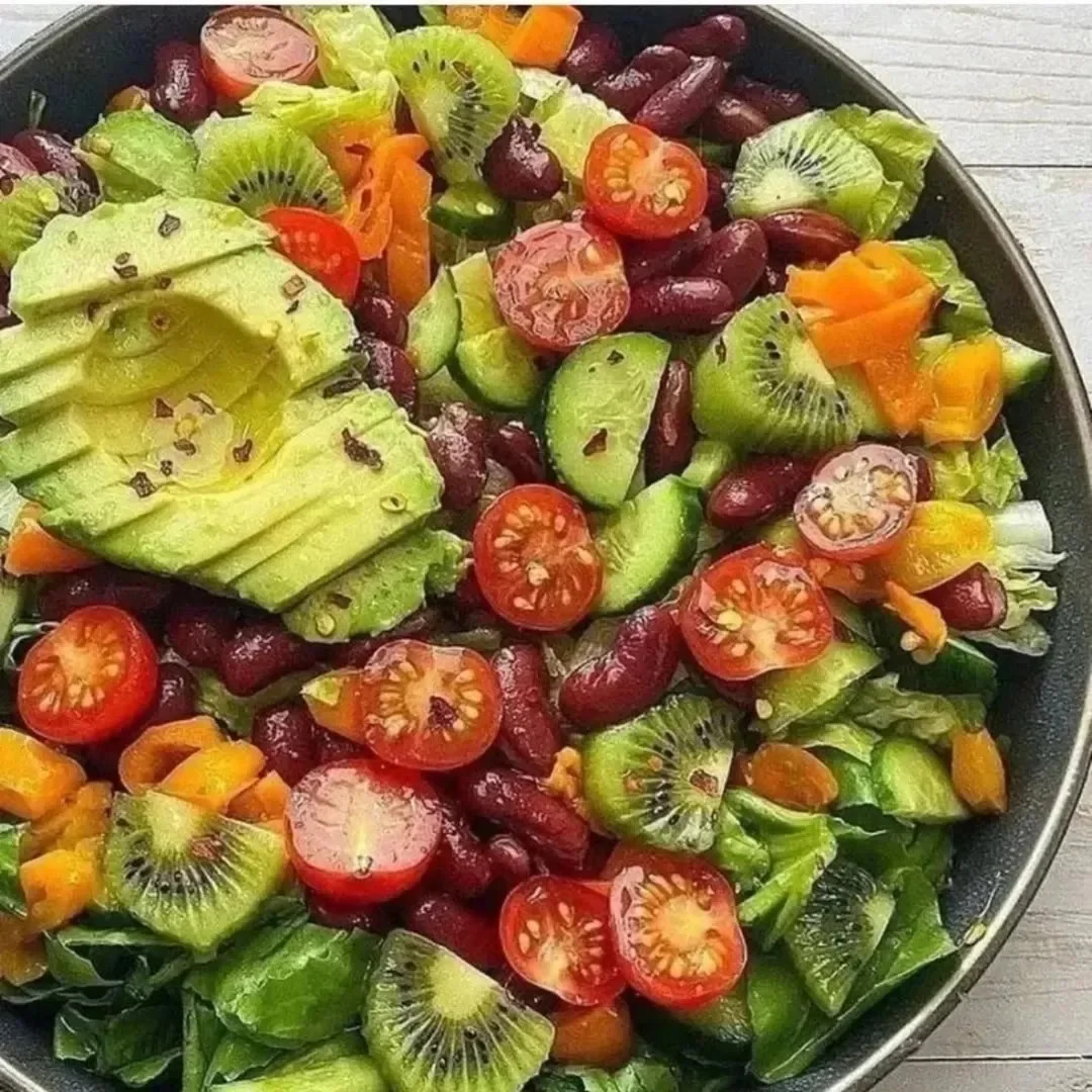 Ingredients: 2 cups cherry or grape tomatoes, halved or quartered 2 ripe avocados, diced 1 large English cucumber, halved and sliced 1 medium red onion, diced 8 ounces small, fresh mozzarella cheese balls Dressing: 1/4 cup basil pesto 2 Tbsps lemon juice sea salt and fresh ground black pepper to taste Instructions: Make your dressing in a small bowl, by whisking pesto sauce and fresh squeezed lemon juice. Season to your taste with sea salt and fresh ground black pepper. In a large bowl, arrange all salad ingredients nicely, as shown. If you're meal prepping, squeeze a bit of lemon juice over the avocado (to prevent it from browning) and refrigerate separately from the dressing. Just before serving, pour dressing over the salad, and toss all of your ingredients very gently to combine well. This really is best eaten right away, but stays good in the fridge for about 48 hours thanks to that fresh lemon juice! Enjoy!