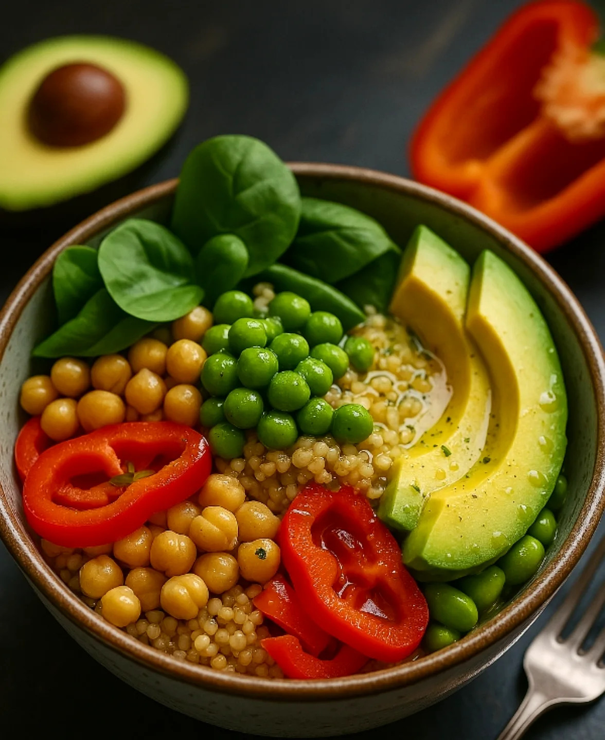 Vibrant Vegan Quinoa Power Bowl with Avocado & Chickpeas