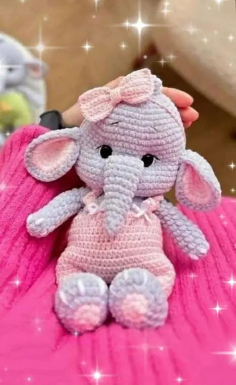 Вязаный крючком слоненок с бантиком: схема для начинающих
