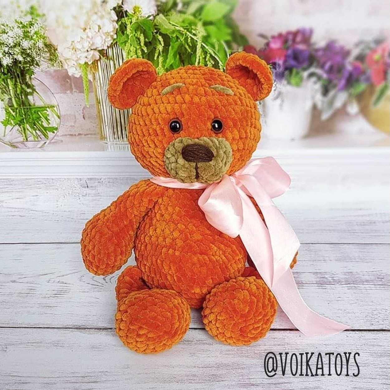 Вязаный плюшевый мишка с розовым бантом: схема и инструкции