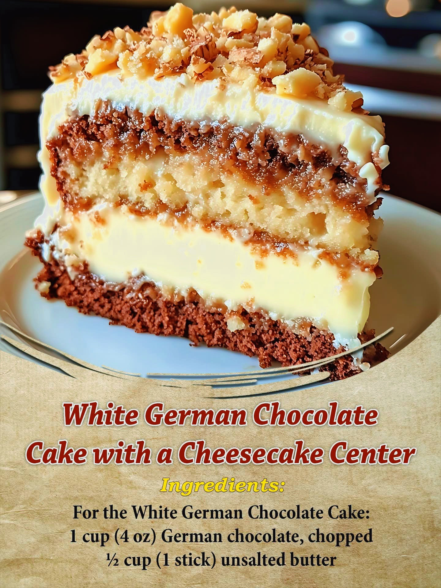 In a small saucepan, melt the chopped German chocolate and butter over low heat, stirring until smooth. Let cool slightly.