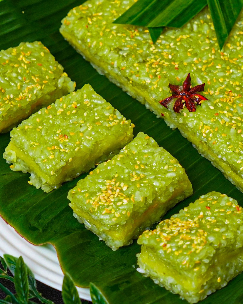 Thành phẩm là miếng xôi lá dứa đậu xanh xanh mướt, mềm dẻo, thơm béo, nhân đậu mịn ngọt, mè rang bùi giòn. Ăn sáng hay ăn vặt đều ngon, mà để vài ngày vẫn dẻo thơm ngon.