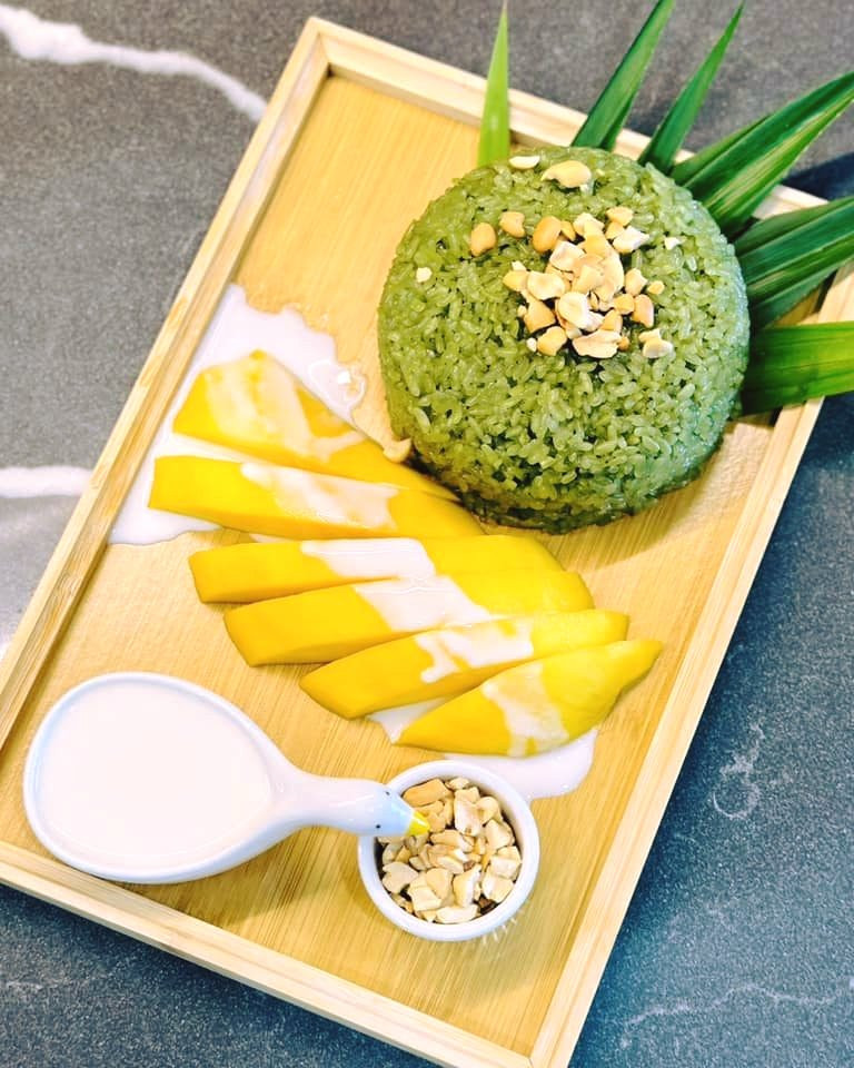 LƯU NGAY CÁCH LÀM XÔI XOÀI LÁ DỨA THƠM NGON ĐÂY CẢ NHÀ ƠI Nguyên liệu chuẩn bị: Xoài chín vàng 1 quả Gạo nếp thái 400 gr Nước cốt dừa 150 ml Lá dứa: 10-12 lá Tinh chất lá dứa: vài giọt ( nếu muốn màu xôi đẹp hơn ) Sữa tươi không đường/ nước cốt dừa 400 ml Bột bắp 1/2 thìa Đường 130 gr Muối 1 muỗng cà phê Đậu phộng rang/ dừa nào 1 ít Cách làm: - Rửa sạch lá dứa rồi cho 200ml nước vào xay nhuyễn, lọc và chia làm 2 bát, 1 bát 150ml 1 bát 50ml - Gạo nếp rửa sạch rồi rồi cho 1 bát lá dứa vào , rồi cho nước vào ngập mặt lá nếp, ngâm 8 tiếng hoặc qua đêm rồi đổ nước đó đi và để ráo nếp và cho vào xửng hấp ( khi để ráo có thể cho thêm vài giọt tinh chất lá dứa vào trộn đều nếp lên để nếp có màu đẹp hơn ) - Bắc một cái nồi nước lên bếp nấu ở lửa vừa. Khi nước sôi cho xửng hấp có chứa gạo nếp rồi hấp trong vòng 45 phút đến khi nếp chín. Khi nếp chín thì cho ra tô hoặc đĩa. - Cho vào nồi 150ml nước cốt dừa, 130gr đường và 1 muỗng cà phê muối. - Nấu hỗn hợp nước cốt dừa ở lửa nhỏ và liên tục khuấy đều đến khi đường tan. - Thêm 50ml nước cốt lá dứa vào và khuấy đều đến khi các nguyên liệu hòa vào nhau thì tắt bếp. - Cho phần nước cốt dừa lá dứa vừa nấu xong vào tô gạo nếp đã được nấu chín. Dùng muỗng hoặc đũa trộn đều cho phần nước cốt thấm đều vào nếp. Dùng giấy bạc hoặc màng bọc tp bọc kín tô nếp lại và ủ trong vòng 20 phút. - Cho nước cốt dừa ( hoặc sữa tươi ) trộn đều với đường, muối và bột bắp, sau đó bật bếp nấu và đảo đều cho đến khi hỗn hợp đặc lại thì tắt bếp - Xoài đem gọt vỏ, cắt thành từng miếng vừa ăn - Xôi chín bày ra dĩa để phần xoài lên, rưới sữa dừa và thêm chút đậu phộng, dừa nào lên là hoàn thành. Chúc cả nhà thành công và thưởng thức món xôi xoài lá dứa thơm ngon! ❤