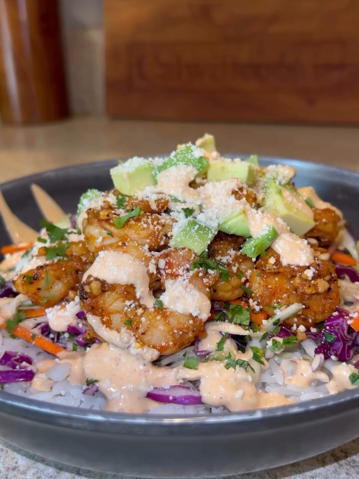 DIRECTIONS 1. Put together the sauce and the slaw then place in fridge until time to plate. 2. Add the shrimp to a bowl. Drizzle in some olive oil, add minced garlic, seasoning and add a tbsp of chipotles in adobo sauce. Mix till well combined. 3. Cook shrimp in a large greased skillet over medium-high heat for 2-3 minutes per side. 4. Assemble your bowl & ENJOY! 🙌🏻 • • • • #explore #cooking #bhfyp #food #easyrecipe #simple #foodporn #healthy #tasty #reels #healthyrecipes #calwillcookit #diet #healthylifestyle #mealprep #gains #weightloss #shrimp #fitfood #highprotein #recipe #dinner